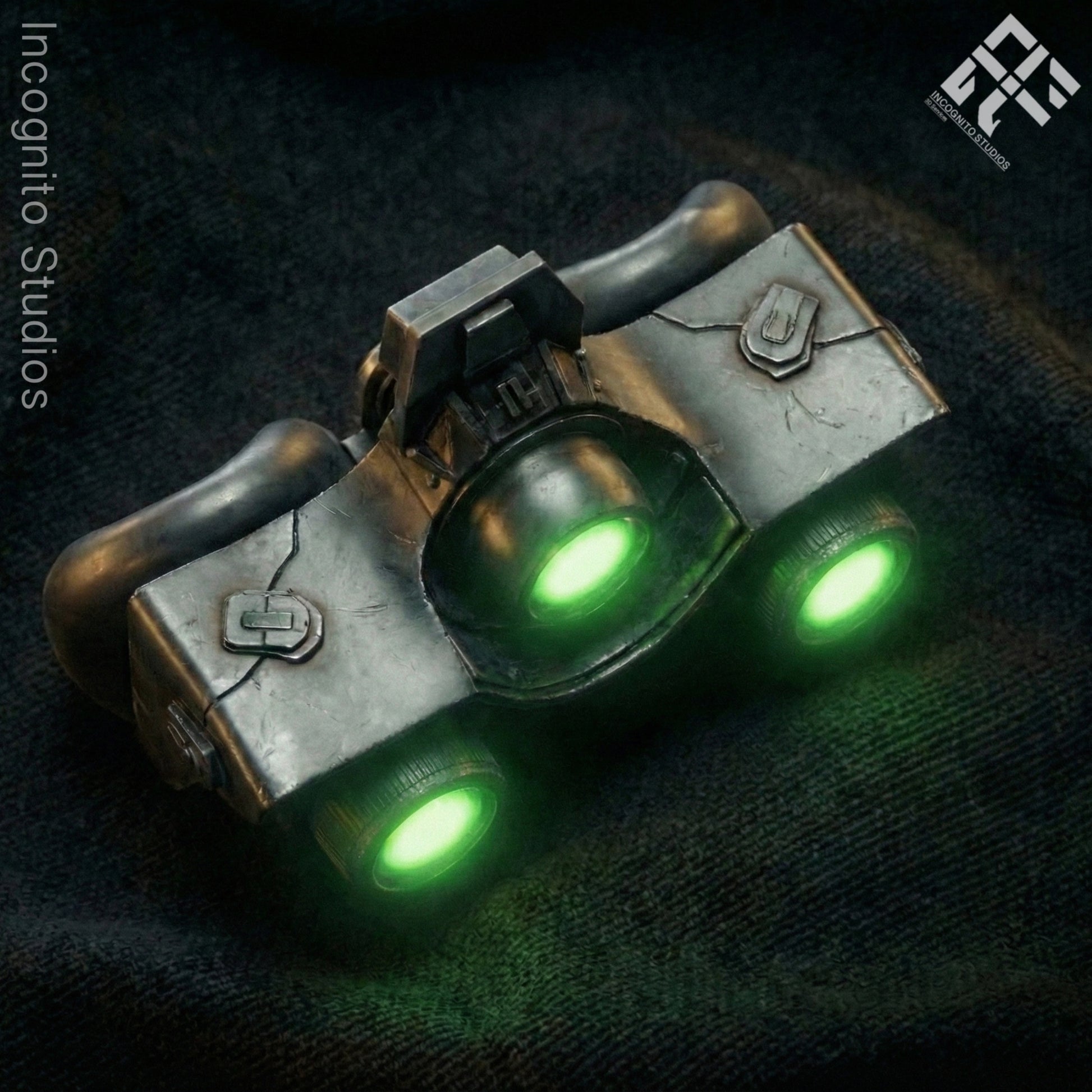 1:1 Scale Accuracy A full-sized, wearable replica featuring the distinct, aggressive profile of elite panoramic systems. This piece captures the gritty, technological visual identity of the genre, including realistic housing geometry and the iconic unique 3 lens design.